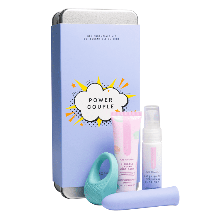 Come together with the perfect kit for you and your partner. Included inside is a sleek, classic vibrator ready for teasing, and a textured c-ring that provides enough pleasure for two. But it doesn’t end there. You’ll also get two different types of lubricant: our Just Like Me water-based lube, and Whipped Sweet Macaron, a creamy and delectable lubricant that provides a smooth and comfortable feel and is an ideal complement to the c-ring. This travel-size kit is perfect for a honeymoon, couple’s getaway, or even a little staycation at home.