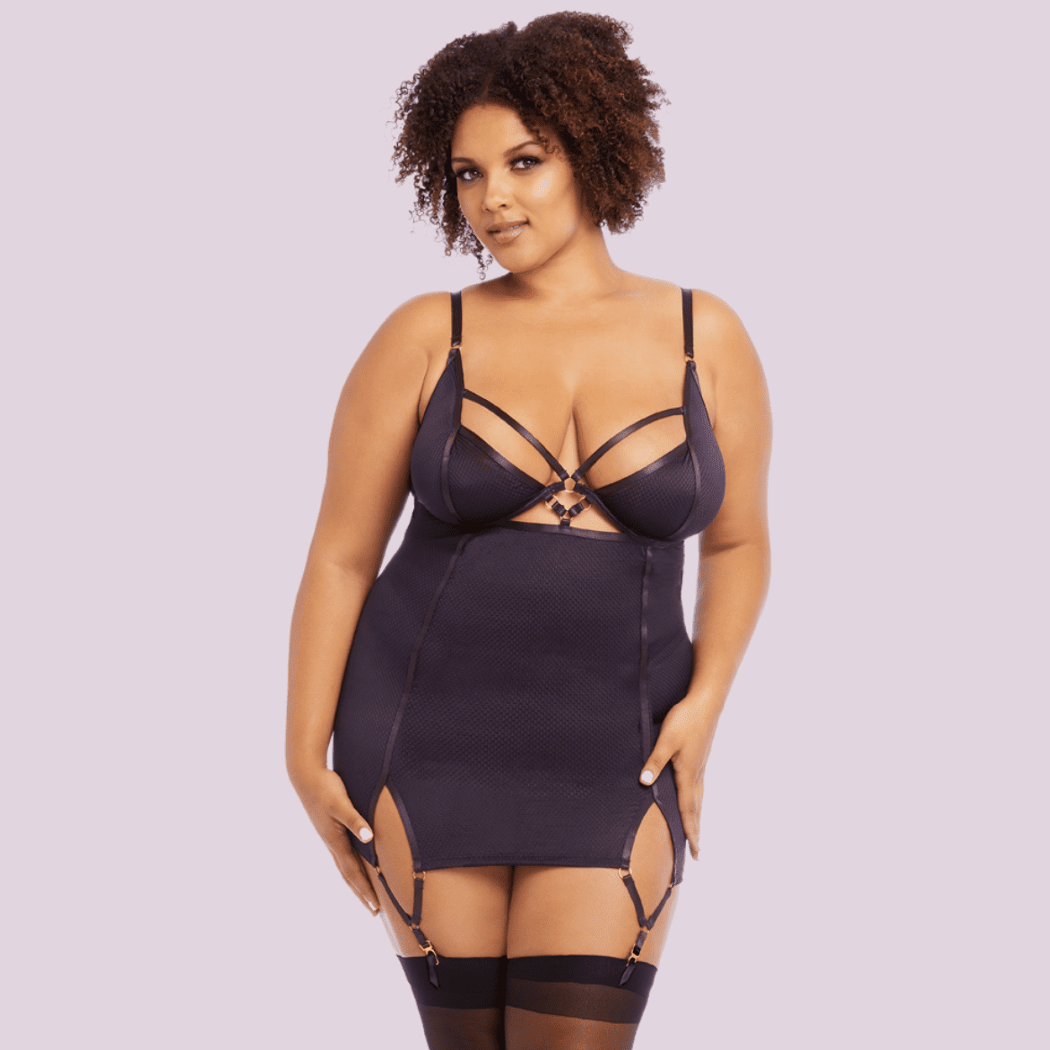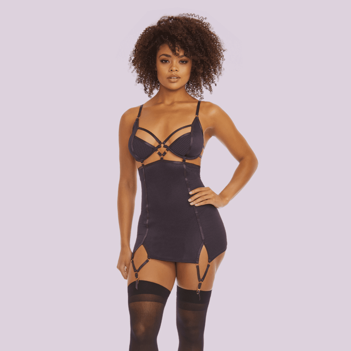 Play to your inner femme fatale in this rich purple garter slip. Power mesh hugs every curve for subtle, all-over body smoothing while satin trim adds a feminine but fierce touch. Pair this piece with your favorite thigh highs and dare to make the first move.