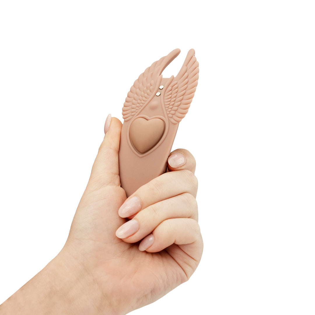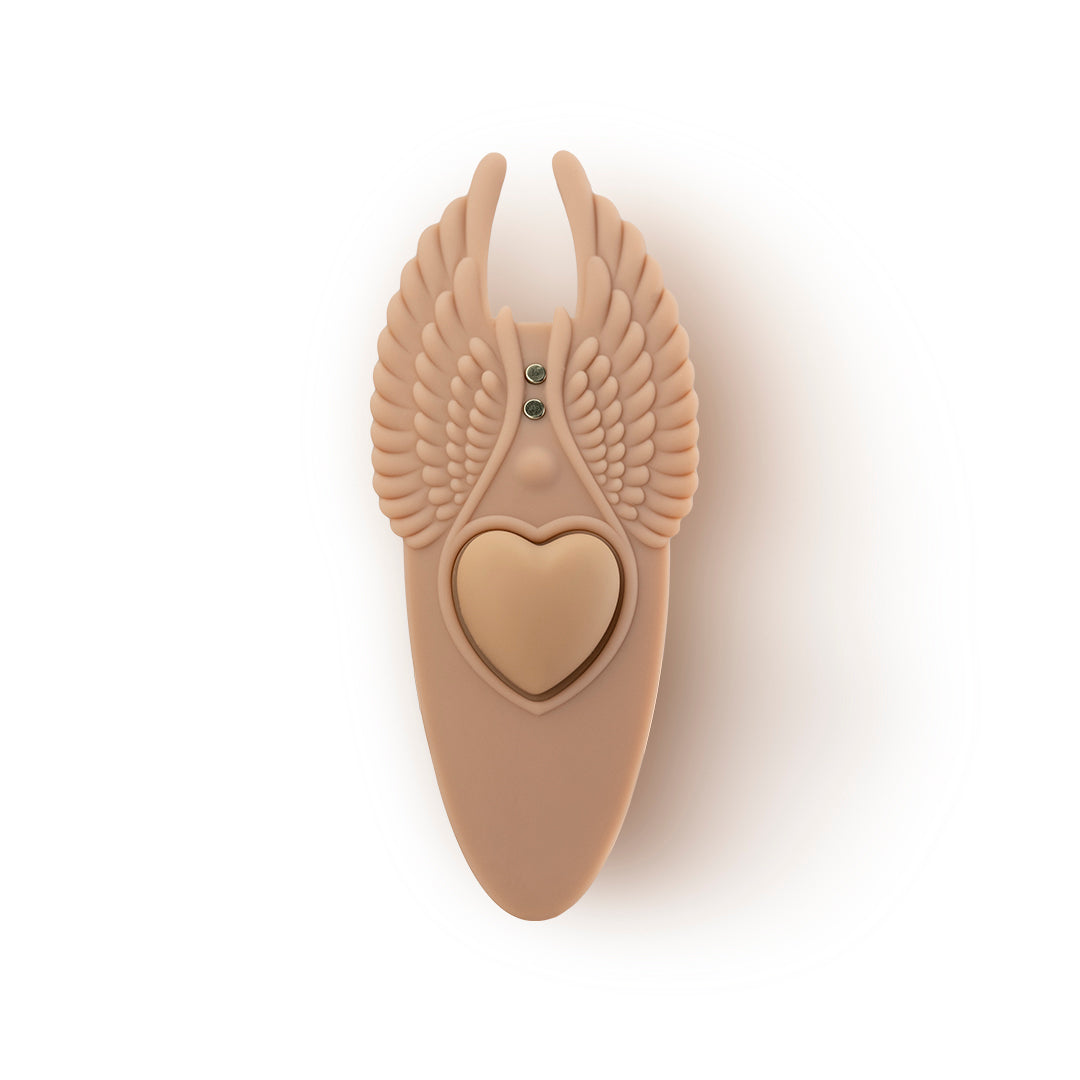 This wearable massager features a detachable heart-shaped magnet that can be used to attach to any undergarment for discreet pleasure on the go. When in use, the soft silicone curves press up against your body, stimulating all your favorite spots.